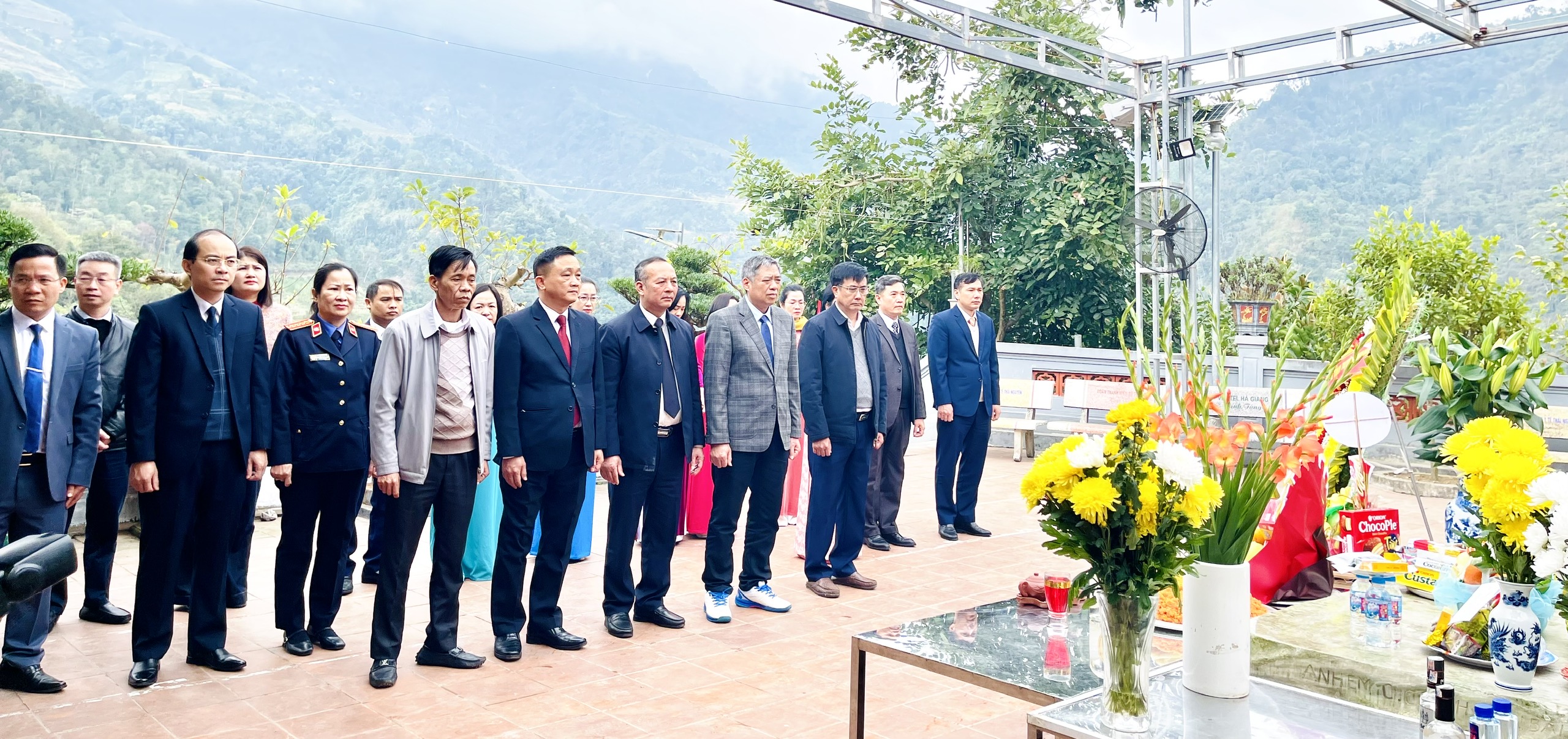 Hình ảnh Đoàn đại biểu dâng hoa, dâng hương tại Đền thờ các Anh hùng Liệt sĩ mặt trận Vị Xuyên trên điểm cao 468: