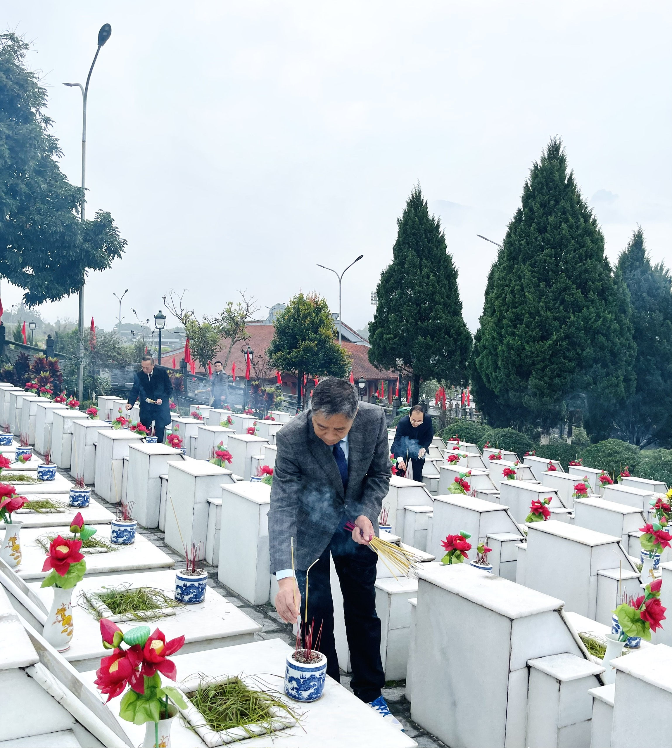 Hình ảnh Đoàn đại biểu dâng hoa, dâng hương, thắp hương phần mộ Liệt sĩ tại Nghĩa trang liệt sĩ quốc gia Vị Xuyên:
