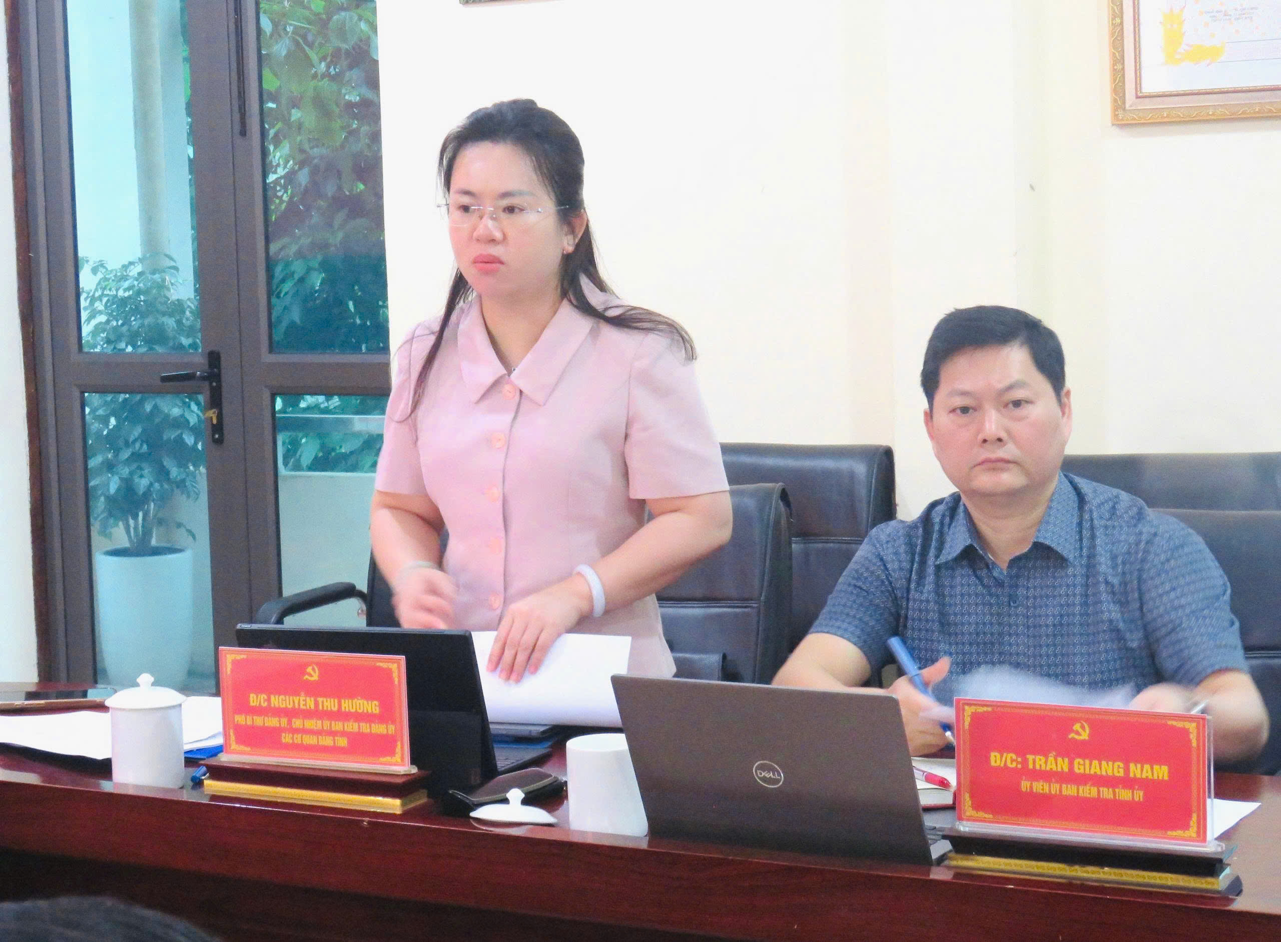 Đồng chí Nguyễn Thu Hường, Phó Bí thư, Chủ nhiệm UBKT Đảng ủy các cơ quan Đảng tỉnh phát biểu ý kiến tại buổi giám sát