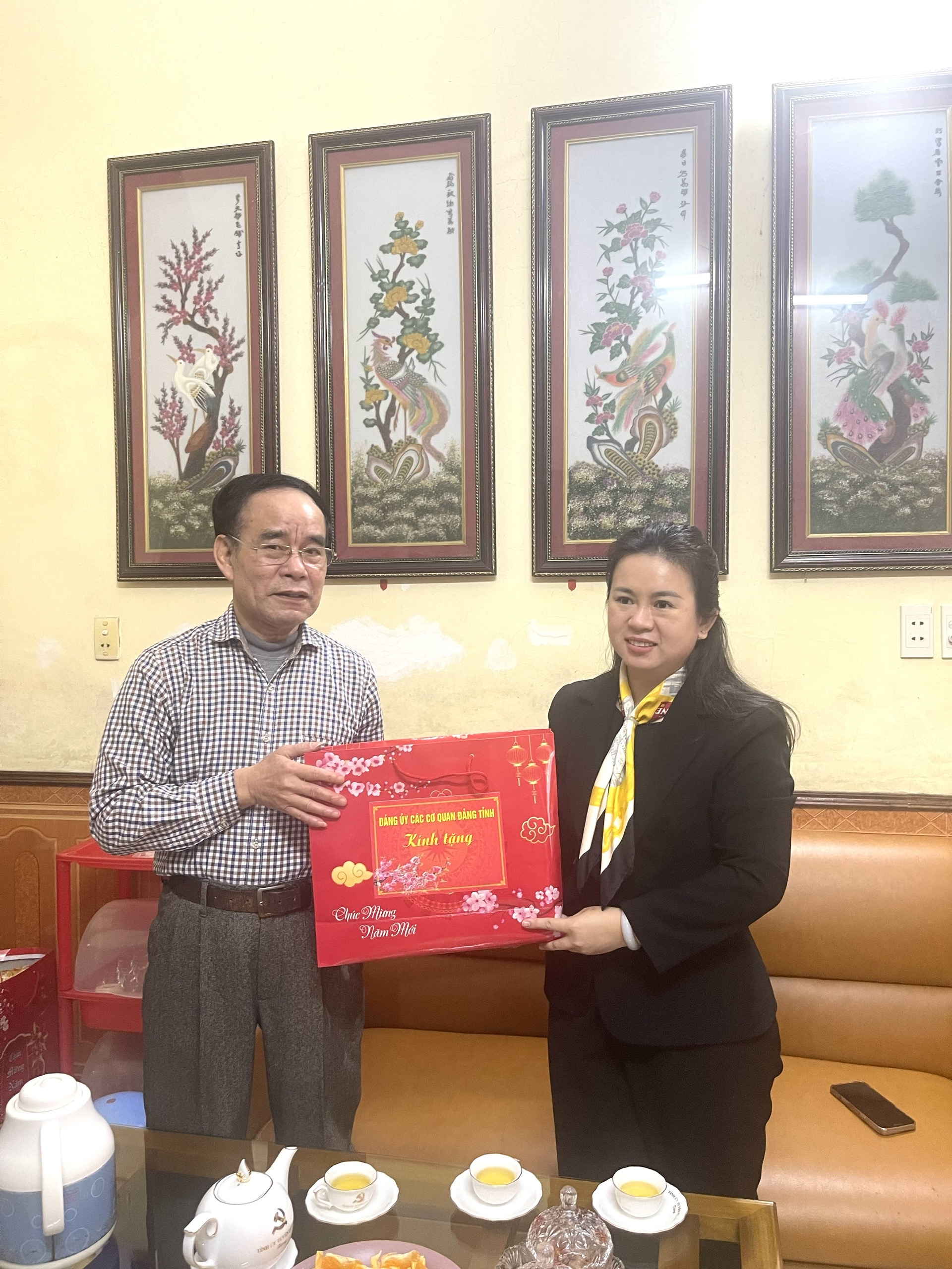 Đồng chí Lê Thị Kim Dung, Phó Bí thư Thường trực Tỉnh ủy, Bí thư Đảng ủy các cơ quan Đảng tỉnh chúc Tết đồng chí Hoàng Văn An, nguyên Ủy viên Ban Chấp hành Đảng bộ tỉnh, Bí thư Đảng ủy Khối các cơ quan tỉnh Tuyên Quang (trước sáp nhập)
